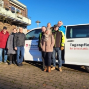 Matthias im Gespräch mit Alfred Schack (sitzend) und Heinz-Alfred Bortmann, Gründungsmitglieder des Sozialwerks.