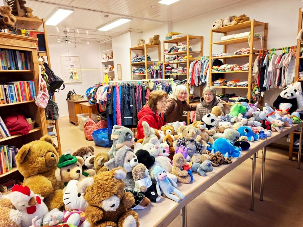 Apropos Spende: Weil nicht nur viele Kundinnen, sondern auch viele Spenderinnen und Spender regelmäßig hereinkommen, gibt es laufend neue Kinderkleidung, Spielzeug usw. im Laden, ein buntes und gut sortiertes Sortiment. Die sehr gut erhaltenen oder neuen Teile werden sehr günstig abgegeben. Und von jedem Verkauf geht eine Spende an das Mutter/Vater-Kind-Haus Bethanien, in dem junge Mütter (seltener auch Väter) mit Kind unterstützt werden.